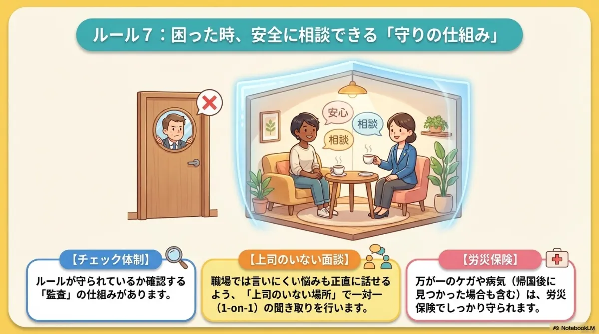 こうした仕組みがあることで、制度が形だけにならず、実際に外国人の方を守る力になります。